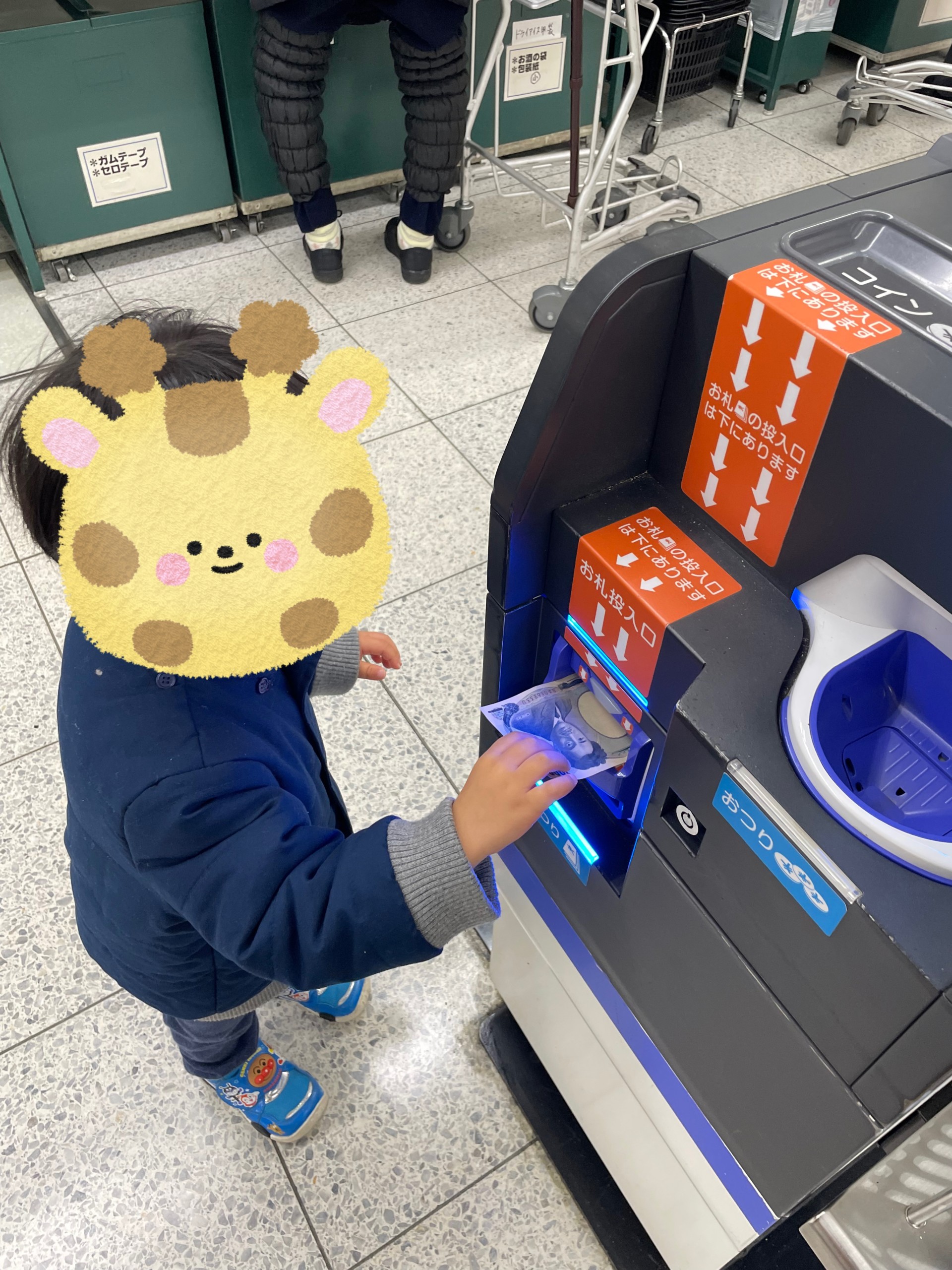レジにてお金を丁寧に投入してくれました。お札は手が吸い込まれないかドキドキと…🤭