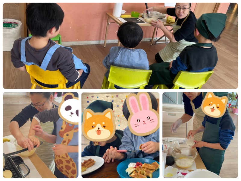ほかほかワッフルに、フルーツやホイップ、甘いソースを自由にトッピングして、和気あいあいとおやつタイムを楽しみました🥰